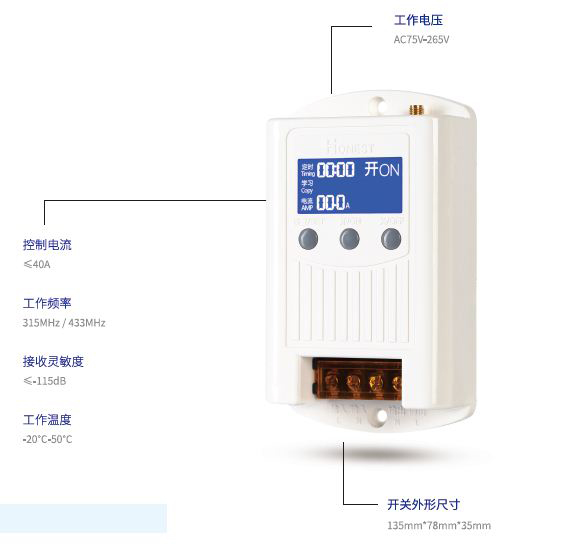 220V遠(yuǎn)距離大功率控制,LCD液晶中文顯示,負(fù)載電流實(shí)時(shí)檢測(cè),定時(shí)關(guān)閉功能